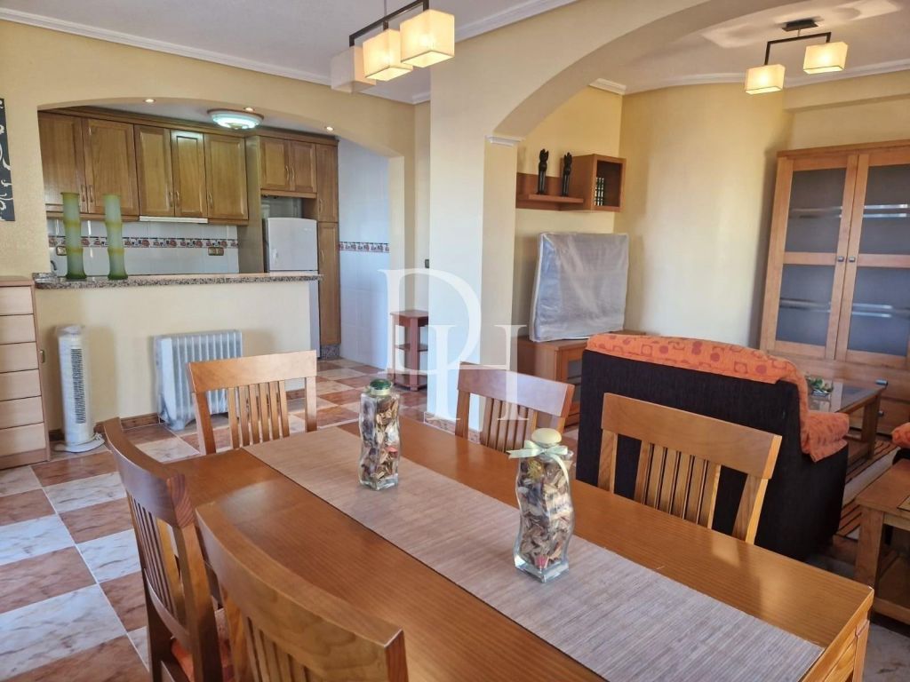 1. Flat → Duplex in Orihuela Costa, Lomas de Cabo Roig, 97 m. of surface, 4000 m. from the beach (km), a double room and a single room, a bathroom, a toilet, property to move into, equipped kitchen, north facing, stoneware floor. Extras: water, fitted wardrobes, garden, bright, light, furniture, communal pool, terrace, trees, shopping malls, parks, supermarkets Community fees: 21 Eur. (monthly)