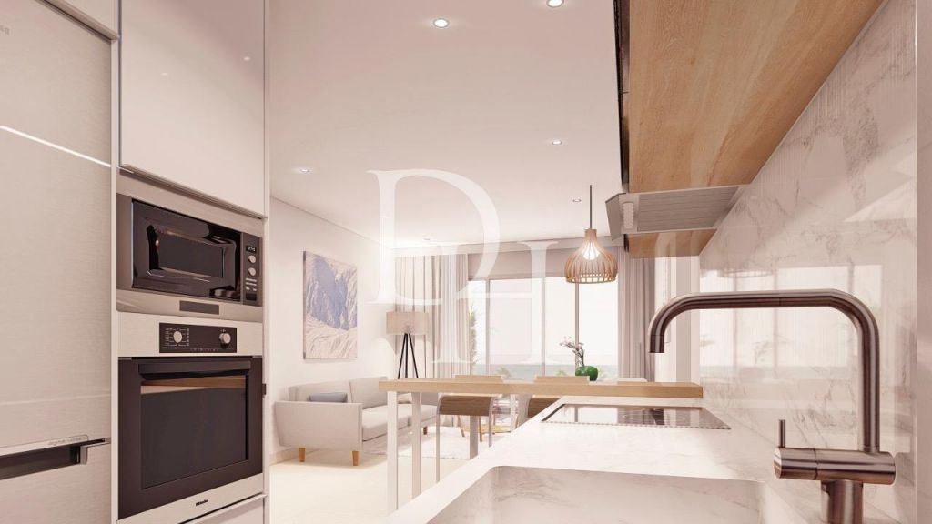 Beautiful bungalows in Pilar de la Horadada with 2 bedrooms and 2 bathrooms with communal pool, communal jacuzzi, gym and children's playground, plus a parking space and storage room in the basement. The kitchen is fully furnished and equipped with an oven and microwave, refrigerator, dishwasher, induction hob, extractor hood and washing machine. LED lighting: indoors as well as indirect outdoor lighting. Lined cabinets with drawers. Heated floors in bathrooms. Fully equipped bathrooms with wall hung toilet, wall hung vanity, mirror, rain shower and screens.