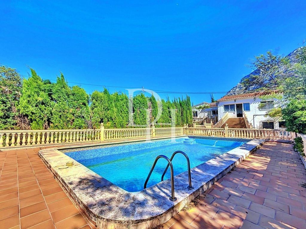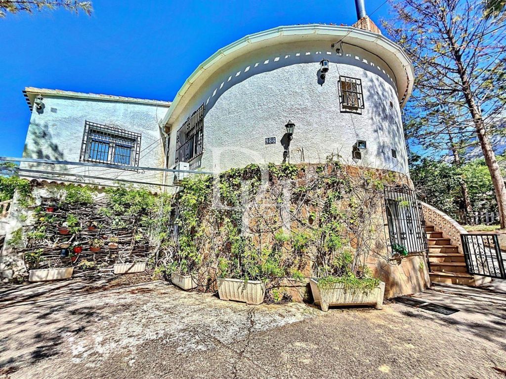 Located in the exclusive residential area below the natural park of Montgó, this villa built in 1987, with beautiful views of the sea and the Montgó, has been renovated and expanded, now offering contemporary and generously designed spaces on both floors.Built area according to Cadastre 545 square meters, on a plot of 1935 square meters, is distributed in 8 double bedrooms and 3 bathrooms.Elegant and Functional Interior Spaces The property has a large open plan kitchen, integrated with the living/dining room, creating a perfect space to cook, relax and enjoy with the family. This space flows out to several connected terraces, ideal for entertaining and outdoor living.Warm and Cozy Environments In winter, the combination of a thermal fireplace and oil central heating ensures a warm and comfortable environment. An impressive staircase descends to a large front terrace and a swimming pool of approximately 13 x 6 m, surrounded by outdoor dining areas.Practical and Comfortable Layout The main hallway gives access to four bedrooms, two bathrooms and a cozy living room with exit to one of the terraces. An interior staircase leads to the semi-basement, a cool space in summer and warm in winter, which includes a large living room, four additional bedrooms, a technical room and a workshop with exit to the outside.Gardens and Outdoor SpacesNatural and Private Environment Surrounded by a natural garden with numerous mature trees, plot of 1935 square meters, the villa offers an environment of tranquility and privacy. Large swimming pool with filter system. At the rear of the pool and the second street, there is a plot, which offers multiple possibilities for development.Details and Qualities- Laundry room- Solarium- Oil central heating combined with wood-burning fireplace, connected to radiators.- Fireplace with heating system through a hot water system.- Blinds, some of them electric, with mosquito nets.- Double glazing for greater energy efficiency.- Hot and cold air conditioning in all rooms.- Ceiling fans.- Internet connection to stay connected at all times.- Automatic gate access to the Villa for security and comfort.- Several terraces- Cistern to collect rain water.- Outdoor tool shed for additional storageThis magnificent villa, with its ample indoor and outdoor space, is perfect for a large family or for those who enjoy entertaining guests.An exceptional property in an enviable location!