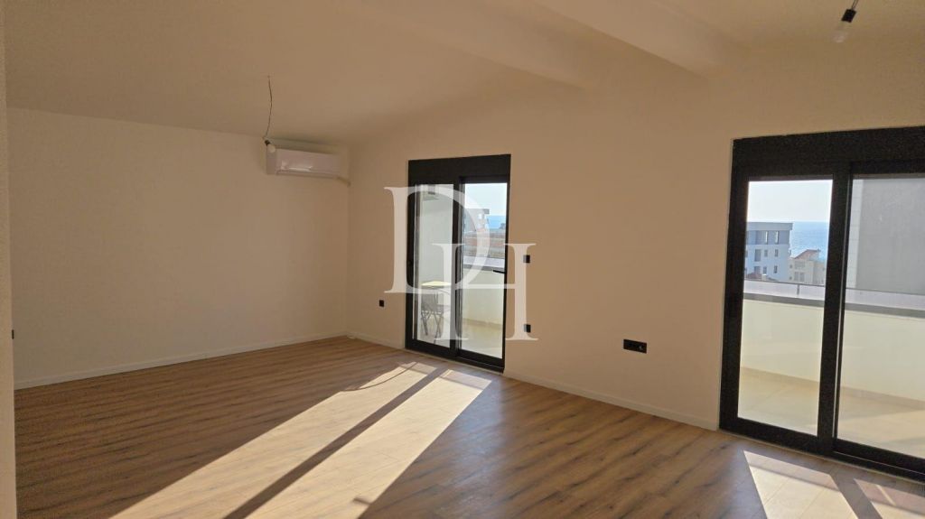 On the Adriatic coast, in the picturesque area of Dobra Voda, there is a comfortable living space created for those who appreciate the combination of nature, comfort and advantageous location. It is located on the top floor of a modern low-rise building, where silence and fresh air are especially felt. The interior space includes an entrance hall, a spacious living room combined with a kitchen area, a separate bedroom and a large terrace with sea views, which makes this option especially attractive for both leisure and long-term living.