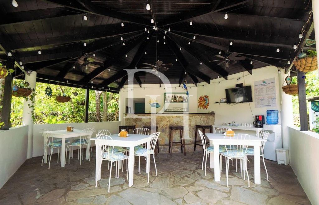 8 guest rooms, each with its own bathroom.A spacious outdoor kitchen for serving guests.A recreation area with a gazebo, creating a cozy atmosphere.A well-maintained garden with many fruit trees (mango, passion fruit, avocado, oranges).The possibility of expanding the territory to increase income.Partial autonomy: solar energy and own well.Advantages: