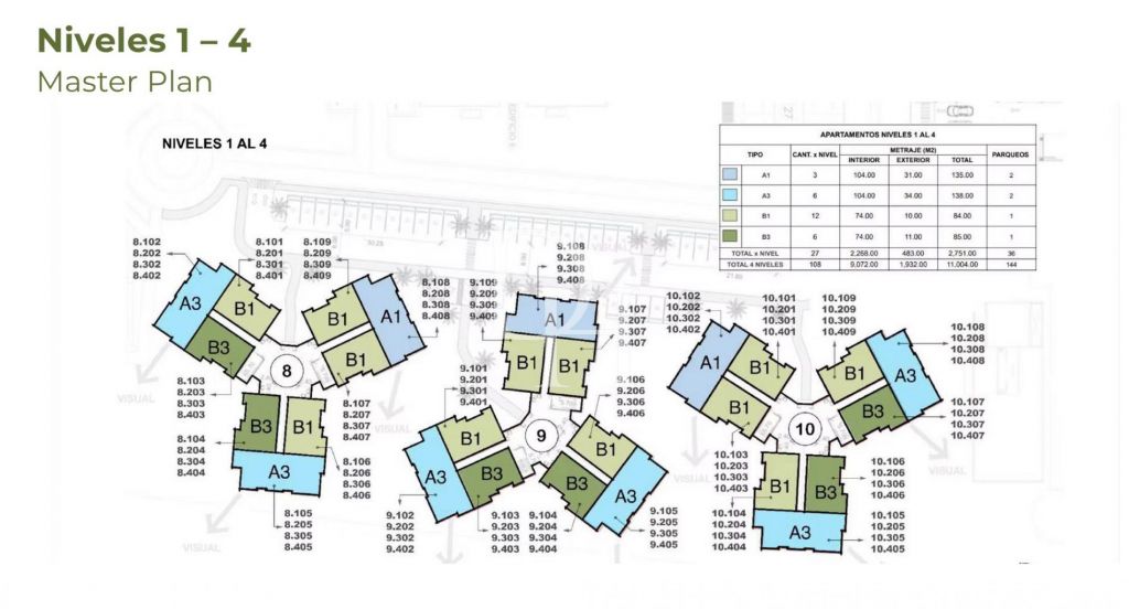- Play area, social spaces, pool, garden.