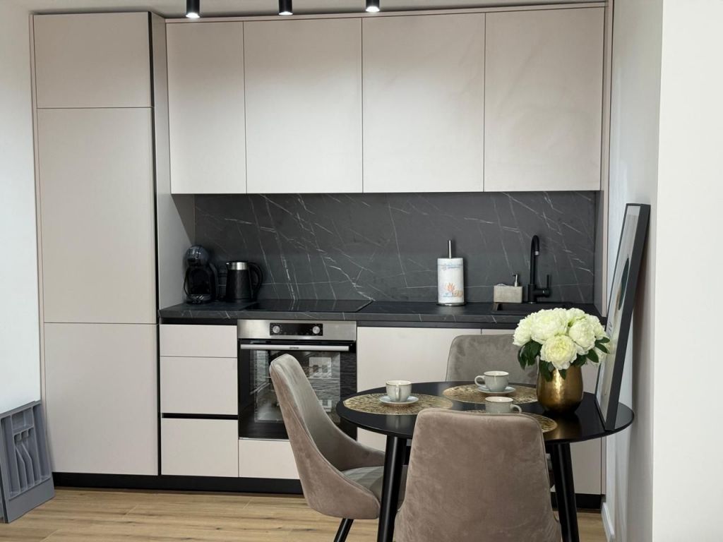 The studio has an area of 31 square meters and is located on the third floor of a four-storey building. The living space is fully equipped with new furniture and modern appliances, which allows you to use it immediately without additional investment. Panoramic windows make the room bright and cozy, and the layout allows you to effectively use every meter.