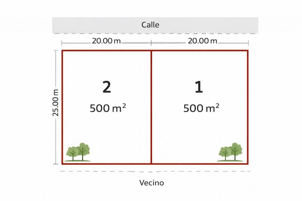 Two plots of 500 m2 each are available, located along the road. Each plot has an area of 500 m2 and is sold separately.