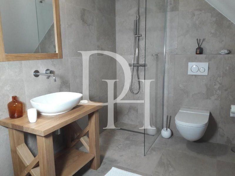 В жилой части (147 м2) расположены пять комнат, четыре из которых уже современно меблированы. Полноценный мансардный этаж можно переоборудовать в большую современную многокомнатную квартиру.