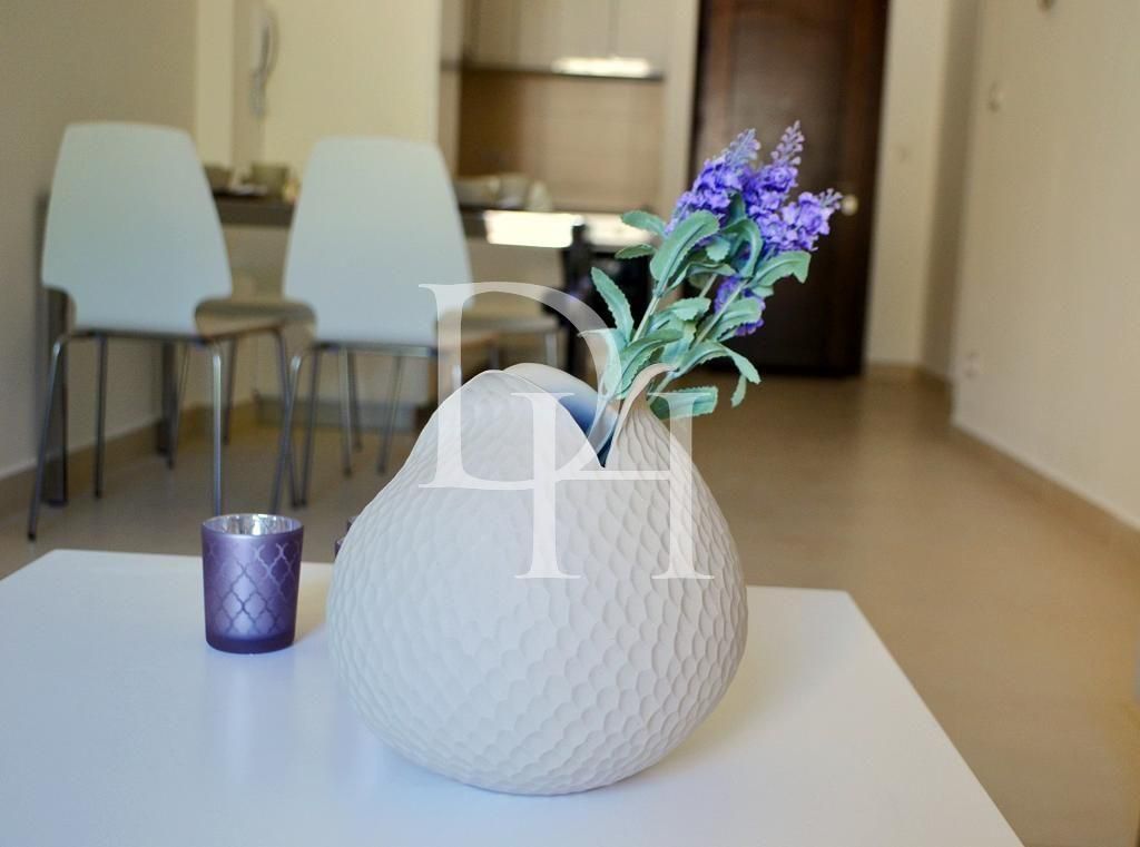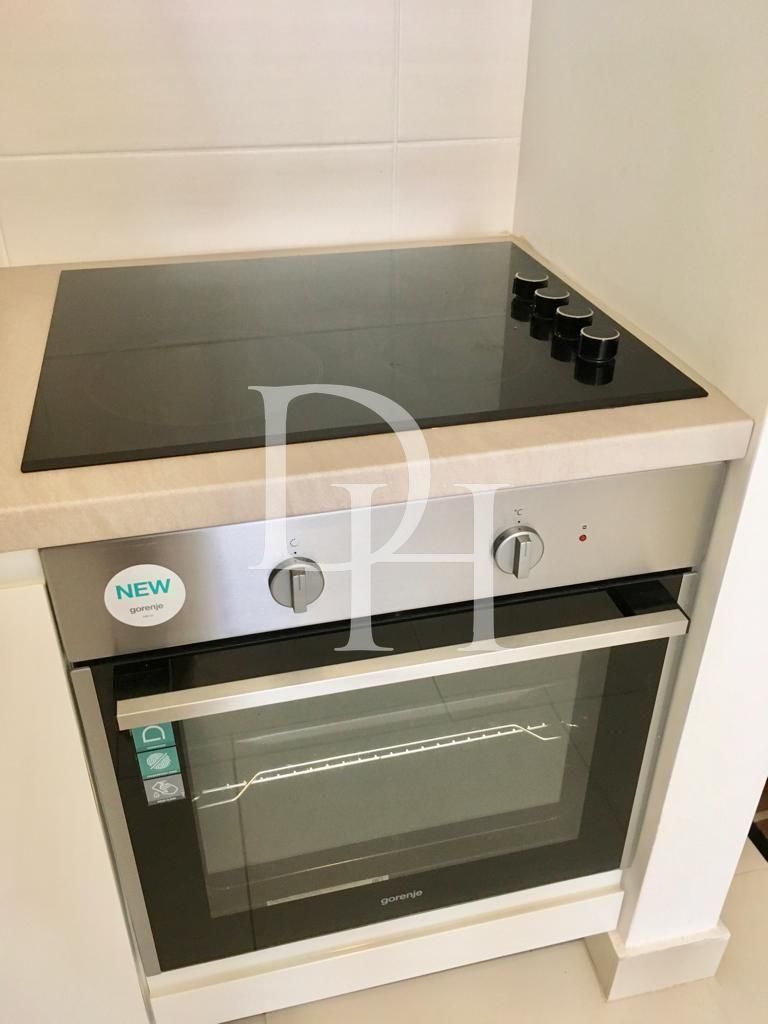 Площадь объекта составляет 58 квадратных метров. Внутреннее наполнение включает просторную гостиную, совмещённую с кухонной зоной, уютную спальню, санузел и террасу с видом на море. Всё пространство полностью обставлено современной мебелью, а также оборудовано техникой от известных брендов Gorenje и Samsung. В наличии варочная панель с духовым шкафом, стиральная машина, микроволновая печь, бойлер и два кондиционера. В гостиной и ванной комнате установлены тёплые полы для дополнительного комфорта в межсезонье.