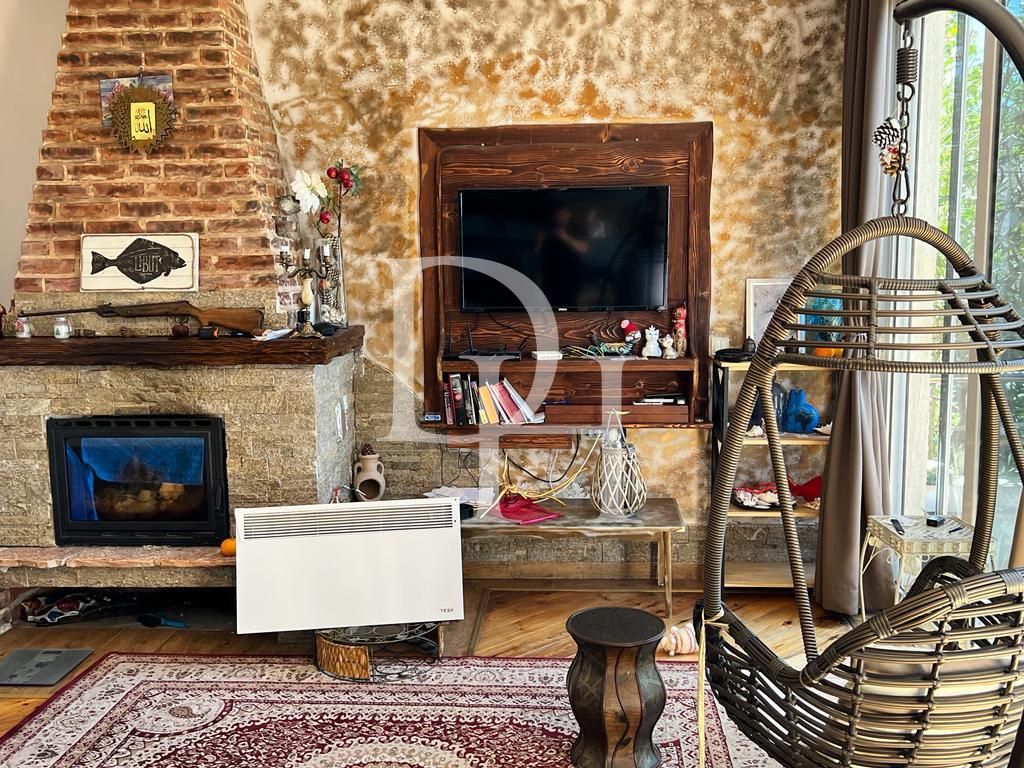 В наличии: терраса, гараж, кондиционер, мебель в комнатах, кухонная мебель, камин\печь, парковка