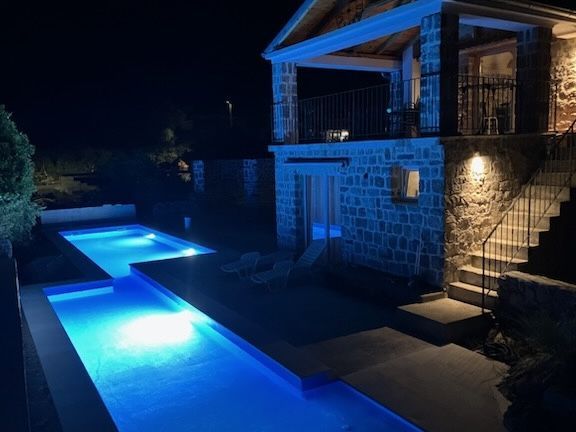 На живописном полуострове Луштица, в небольшом поселке Забрдже, среди холмов и средиземноморской зелени, находится комфортабельное жилое пространство с удивительным панорамным видом на море. Уединенное расположение, близость к пляжам и первозданная природа создают идеальные условия для спокойного отдыха в кругу семьи. Всего в пяти минутах езды - чистейшее побережье, а сам участок находится всего в 700 метрах по прямой линии от воды. Здесь можно наслаждаться тишиной, морским воздухом и полным погружением в природу.