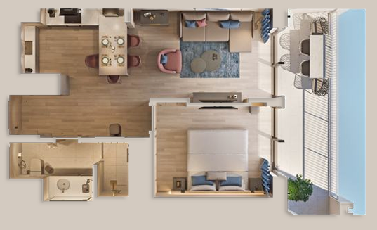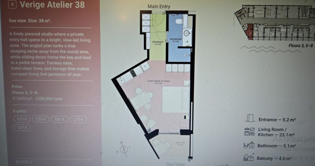Стоимость апартаментов : Студия €289 тыс. ,1‑спальная €263-477 тыс.,2‑спальная €437-893 тыс., 3‑спальная €1.37-1.45 млн