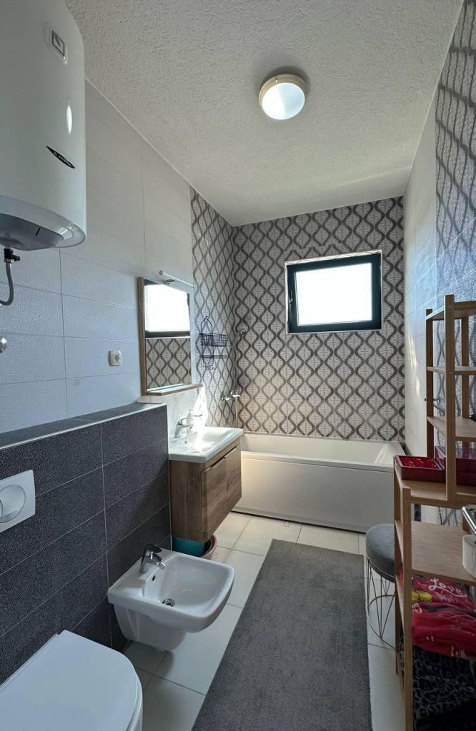 Жилой объект общей площадью восемьдесят один квадратный метр имеет удобную и функциональную планировку Внутреннее пространство включает две отдельные спальни просторную жилую зону с кухонным блоком санузел и балкон с открытым видом на море Такое распределение площади позволяет комфортно разместить семью или использовать объект для размещения отдыхающих