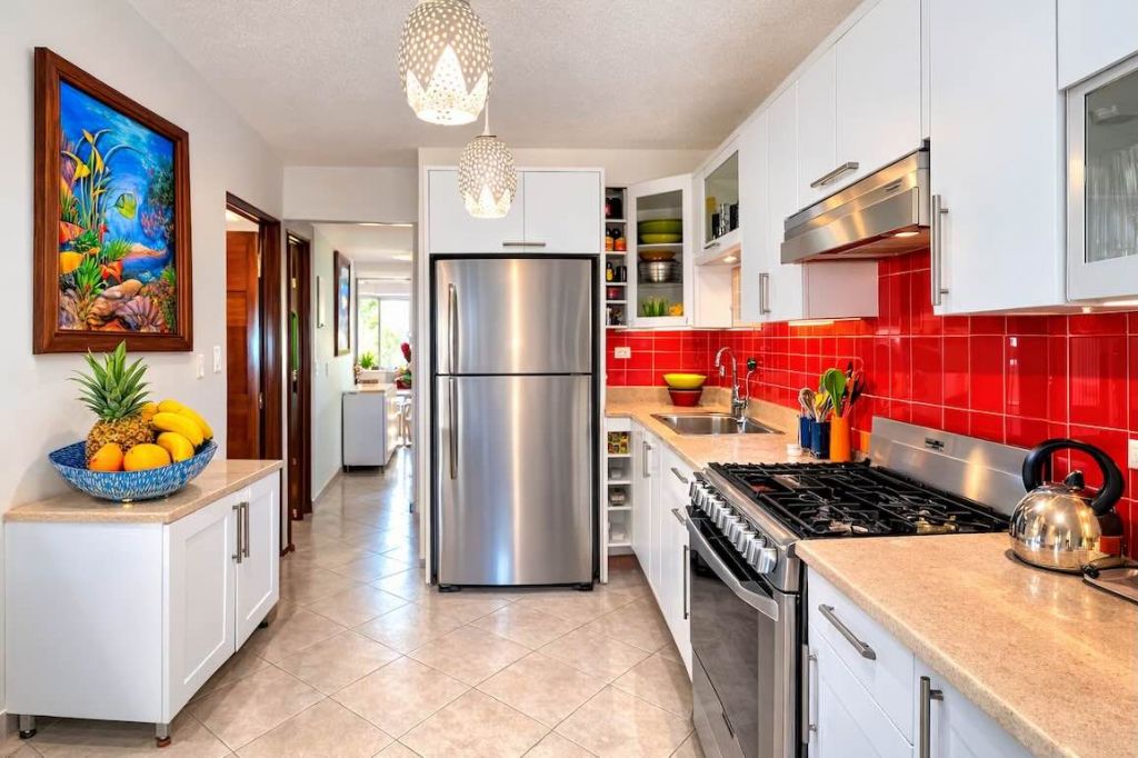 Светлая квартира с открытой планировкой кухни и прямым выходом на балкон с видом на океан.